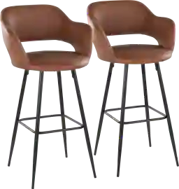 Inspired by contemporary design, the Orkhid Brown Barstool, Set of 2 features a cut-out backrest ergonomically designed to fit your body, armrests for additional comfort, and a built-in footrest for added comfort. This barstool is upholstered with luxurious faux leather. Available in a variety of color options, choose the color that suits your space best Customer assembly required.