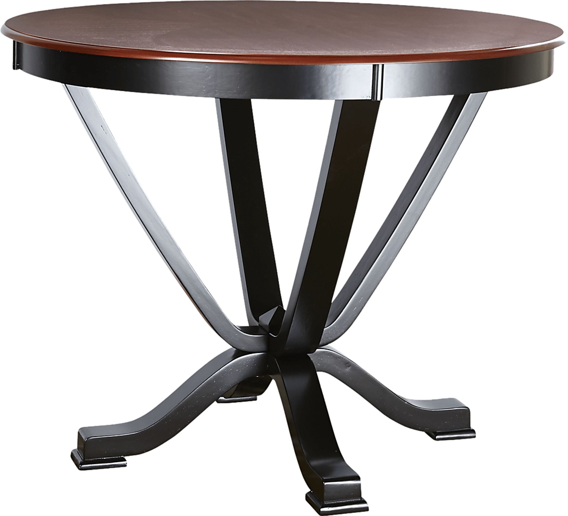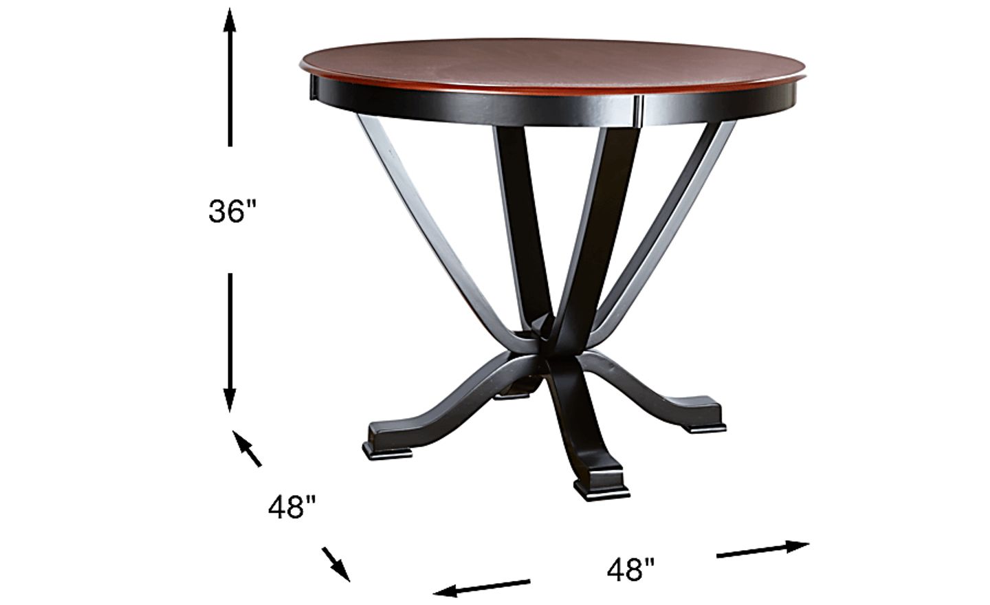 The Orland Park counter height table is sure to add a little spice to your dining area. This eye catching gathering place features a 48 inch cherry finished top, supported by a decorative pedestal base in a rich black finish.