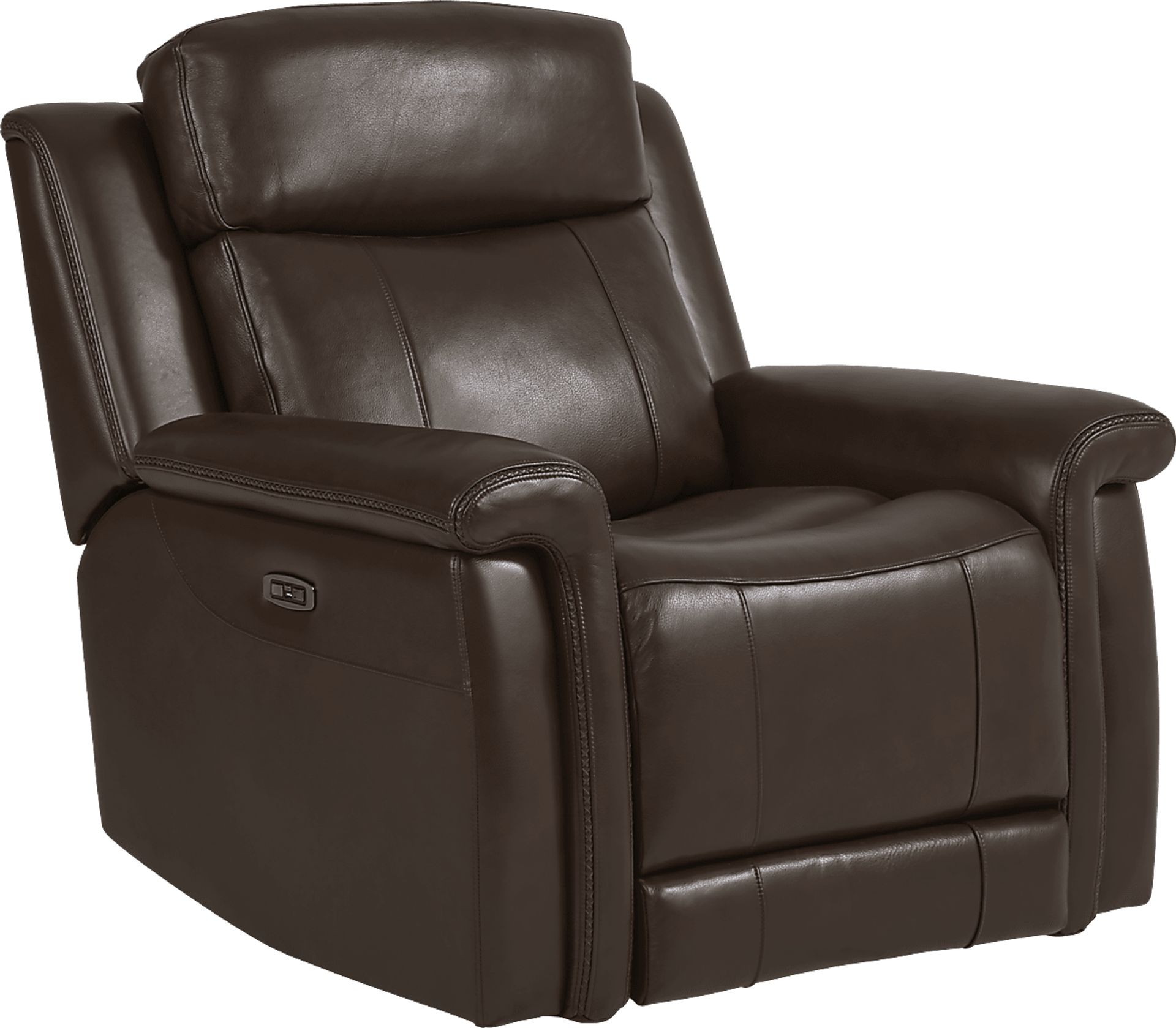 The perfect resting spot after a long day, the Orsini dual power recliner is a luxurious piece that everyone can appreciate. Upholstered in sumptuous brown top grain leather where the body touches, this reclining chair features a headrest and footrest that recline to your ideal position at the touch of a button. Padded arms and chaise style footrests offer spacious seating that envelopes you in comfort. Upholstery: Top Grain Leather Where the Body Touches and Vinyl Sides and Backs.