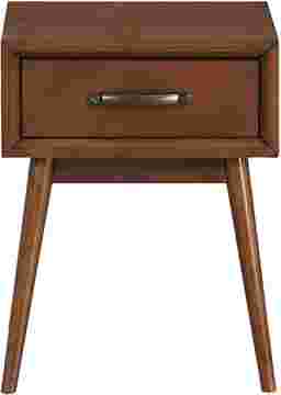 Fun yet functional, the Orson brown end table offers a modern take on timeless mid-century modern style. A rich brown honey finish highlights its round tapered legs and beveled frame while its storage drawer keeps essentials close at hand. Usable as an end table or nightstand, you can find a place for this piece anywhere in the home. Some customer assembly required.