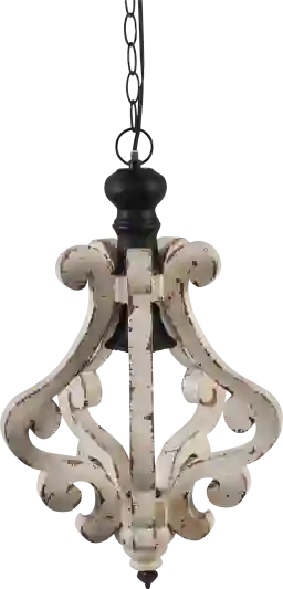 Hang this delightful Osage Isle chandelier in your room for a simple vintage look. Made from firewood in a distressed antique white finish, this traditional piece feature one light with iron fixtures to hang from your ceiling. Professional installation by an electrician is recommended.