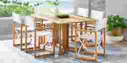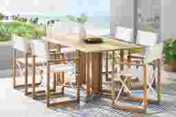 Oscar Natural 7 Pc Folding Outdoor Dining Set With White Chairs