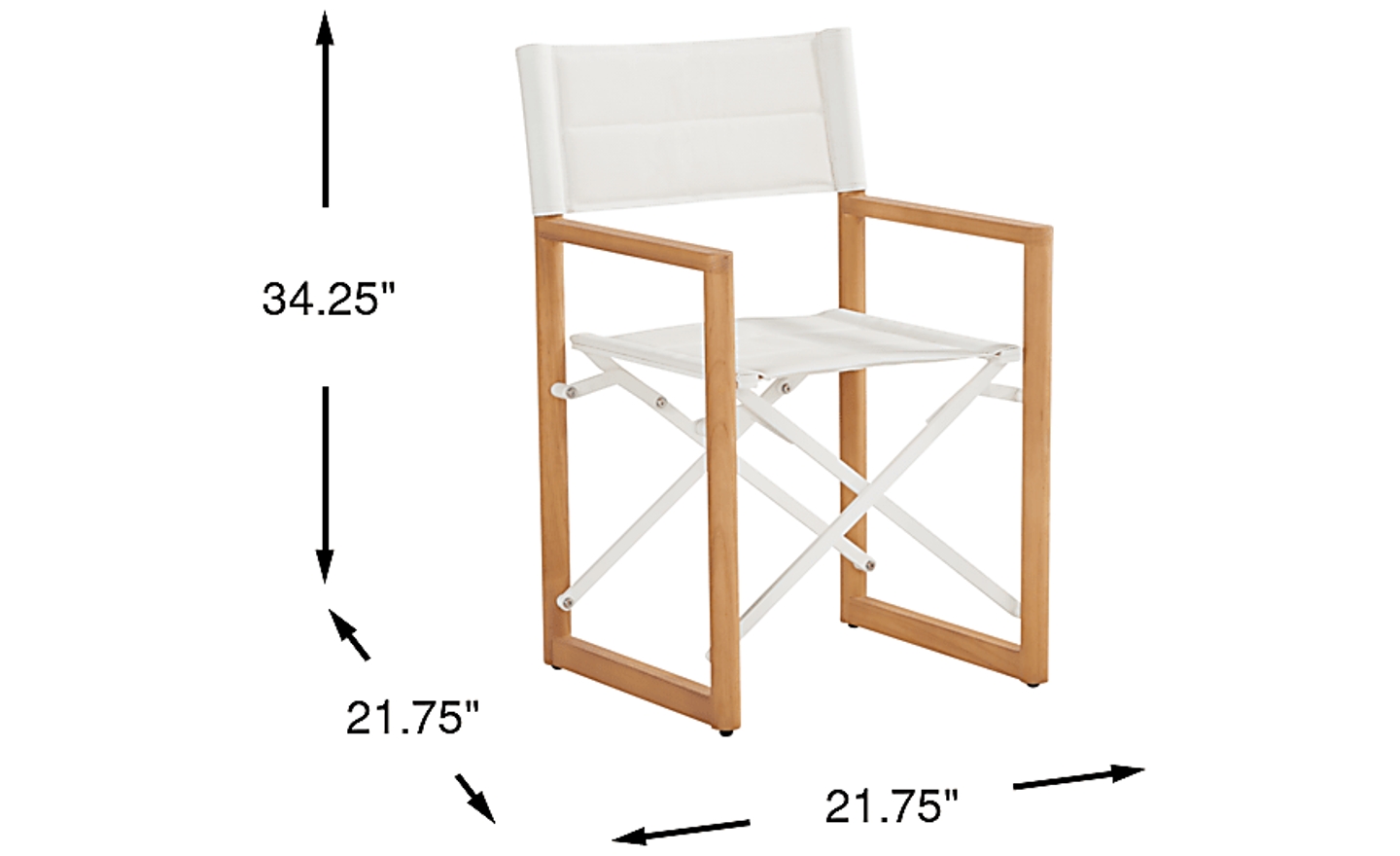 Effortlessly tucked away when not in use and electric when the spotlight hits, the Oscar dining set is never just set up - it's staged for greatness. This dining chair instantly unfolds to reveal a padded sling seat in white for a touch of comfort. Rectangular teak frames in a natural finish form the arms and legs with weather-resistant aluminum cross-supports in brilliant white. Whether it's time to say goodnight or make room to maximize the space, this piece folds to a fraction of the size and stands on its own for effortless storage.