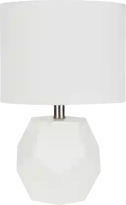 This lamp is well-suited for busy households because of its ceramic construction and geometric design. Ceramic is a naturally heavy material, providing significantly more stability and "heft" than lightweight plastic or thin metal alternatives. Furthermore, the geometric, gem-shaped body serves as a wide, low-profile base that lowers the center of gravity, making the lamp much more resistant to tipping if accidentally bumped.