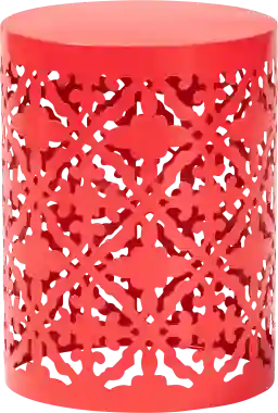 Design a cozy outdoor sanctuary with the delightful Amilalyn side table. Made in China, this table is constructed from solid metal featuring a cool aqua finish. Geometric cut-outs on the sides of the table form a unique, elegant display that allows light to pass through its frame. The Amilalyn will arrive fully assembled and utilizes a round, cylindrical shape for excellent stability. Whether used for outdoor snacks and drinks or to display decorations, the Amilalyn side table is an exquisite accent to any patio or deck. Customer assembly is required.