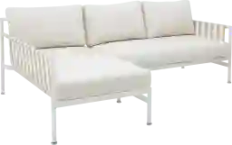 We're bringing the Riviera to you with the outdoor Arboleda cream 2 Pc left arm chaise sectional, designed with an aluminum frame to prevent rust and ensure longevity, making it a durable addition to your backyard or patio. Crafted with outdoor-grade, UV-resistant polyester fabric and a powder-coated aluminum finish, this collection is built to withstand the elements while maintaining its chic appeal. The sectional features reversible cushions for easy stain management and high-density foam for indoor-level comfort, all while bringing the signature style of the French Riviera to your space with its stylish stripes. Plus, adjustable levelers offer the perfect solution for uneven outdoor surfaces, ensuring your sectional remains stable and wobble-free on any terrain. Customer assembly is required.