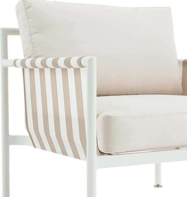 We're bringing the Riviera to you with the outdoor Arboleda cream accent chair, designed with an aluminum frame to prevent rust and ensure longevity, making it a durable addition to your backyard or patio. Crafted with outdoor-grade, UV-resistant polyester fabric and a powder-coated aluminum finish, this chair is built to withstand the elements while maintaining its chic appeal. Customer assembly is required.