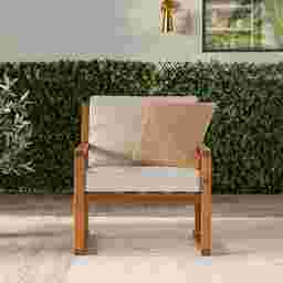 Sleek, simple, and oh-so-stylish, this outdoor Arborhazy accent chair is just what you need to craft a patio paradise. With its upholstered olefin cushions, this chair is the perfect perch to curl up and finish your latest read, or sit and sip or chat with friends. A slatted back, angled frame, and curved edges cater to the luxe look and feel that'll make your backyard or patio your favorite place to be. Whether it's displayed inside or out, this accent chair will effortlessly upgrade your space. Customer assembly is required.