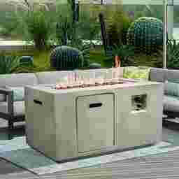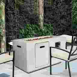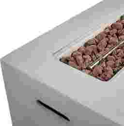 The outdoor Brushwood gray gas fire pit will add warmth and contemporary style to any outdoor living space. This outdoor fire pit is constructed of Kaolin with a unique cement-look gray finish that is sure to complement any existing outdoor furniture and decor. The flame is easily ignited and adjusted with the convenient and easy to use control panel. The fire is controlled by a propane tank not included to avoid the smells of a traditional wood burning fire pit. Decorative lava rocks are included. No assembly is required.
