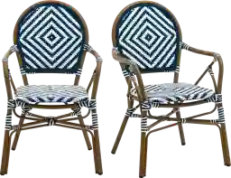 These chairs are specifically designed for both indoor and outdoor use, offering exceptional versatility for your home. Their refined geometric pattern and curved arm aesthetic allow them to transition seamlessly from a sun-drenched patio to an indoor breakfast café or coastal-themed dining room.