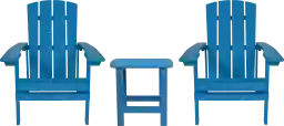 This furniture set is built with UV-protected materials to help maintain its vibrant blue color even when placed in sunny areas like an open deck or patio. While no material is completely impervious to the sun over many years, the UV protection significantly slows the fading process, ensuring your outdoor space stays bright and inviting for seasons to come.