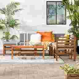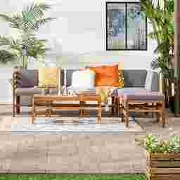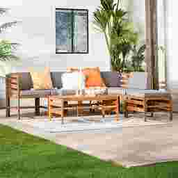 Rock your next summer birthday bash or barbecue with this modern seven piece patio set. Each chair features plush back and seat cushions for a comfortable perch for all your guests. Removable covers provide easy cleaning after the party is over. The modular design offers the ability to conform the set to any patio or deck space, so you don't need to stress about finding the perfect fit. The plank-style table is sure to bring a relaxed, boho atmosphere to any event you host in your backyard. Customer assembly is required.