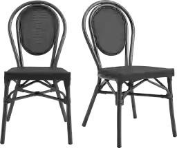The outdoor Gately black side chair, set of 2 is a perfect accent for your indoor or outdoor furniture. This chair features a weather resistant and strong aluminum frame with comfortable and breathable textilene fabric material. The stackable design makes it easy to store and save space after use.
