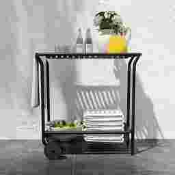 The outdoor Ischia black cart's exquisite slat design and gleaming surface make it look great on your patio, in your garden, or anywhere else indoors or out. Made of powder-coated steel, this cart is rust, corrosion, and water-resistant for long-lasting use. Customer assembly is required.