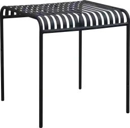 Like most metal outdoor furniture, a black finish will absorb heat when placed in direct sun. However, this table features a smart slat-top design that encourages airflow, helping it stay cooler than a solid metal surface. If you are in a high-heat climate, such as the desert, we suggest placing the table in a shaded area or pairing it with a freestanding cantilever umbrella to ensure the surface remains comfortable during peak daylight hours.