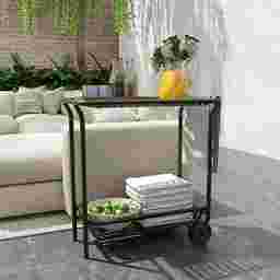 This bar cart is engineered for outdoor longevity using powder-coated steel. This specific material and finish are chosen for their exceptional resistance to rust, corrosion, and water. Unlike untreated metals, the powder-coating process creates a hard, protective barrier that withstands regular exposure to the elements, ensuring the frame remains structurally sound and visually appealing on your patio or in your garden.
