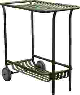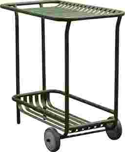 The outdoor Ischia green cart's exquisite slat design and gleaming surface make it look great on your patio, in your garden, or anywhere else indoors or out. Made of powder-coated steel, this cart is rust, corrosion, and water-resistant for long-lasting use. Customer assembly is required.
