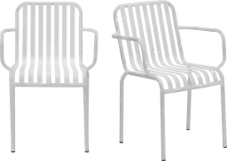 The outdoor Ischia II white armchair, set of 2 has an exquisite slat design and gleaming surface that make it look great on your patio, in your garden, or anywhere else indoors or out. Made of powder-coated steel, these chairs are rust, corrosion, and water-resistant for a long-lasting use.