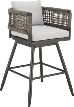 Designed for functionality and relaxation, this barstool includes a smooth swivel mechanism that allows for easy movement and conversation. Comfort is further enhanced by plush, removable cushions upholstered in soft polyester and a unique rope-detailed back that provides both textural interest and ergonomic support. The open-back style also promotes airflow, keeping you cool during warm outdoor gatherings.