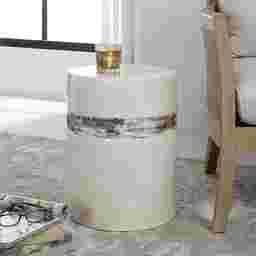 Yes, this stool is exceptionally well-suited for urban apartment living and compact balconies. With a slim 13-inch footprint, it provides the functionality of a side table or extra seat without the bulk of traditional patio furniture. Its vertical ribbed texture and off-white finish add visual interest and a sense of "height" to smaller areas without crowding the layout.
