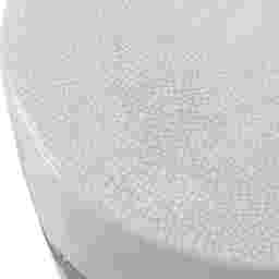 Showcasing a rustic casual look, this ceramic Rumra garden stool features an off-white crackle glaze with distressed rust brown details and noticeable ribbed texture. May be used outdoors, but protection from freezing temperatures is recommended.