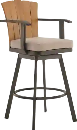 Introducing the Sallodge swivel barstool, an exquisite fusion of contemporary design and natural beauty meticulously crafted to elevate your outdoor entertaining space. This versatile stool seamlessly combines the sleek appeal of aluminum with the timeless elegance of teak wood accents and plush cushions, creating a sophisticated and enduring piece of outdoor furniture. Crafted with precision, this barstool boasts a sturdy aluminum frame, ensuring both durability and a modern aesthetic that effortlessly complements your outdoor setting. The water-resistant and UV-resistant features of the Sallodge barstool makes it a resilient choice for your outdoor space. The solution-dyed acrylic fabric ensures vibrant colors and resistance to fading, offering lasting beauty in the face of changing weather conditions. Whether under the sun's warmth or facing unexpected rain, this stool stands as a steadfast and stylish seating solution for your patio or outdoor bar area. Customer assembly is required.