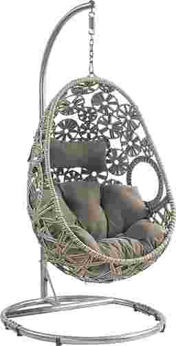 A statement piece for any backyard setting, this Shayleen modern patio hanging chair with a stand is the perfect place to snuggle up with a book or enjoy the sunshine. Its distinct shape makes a bold statement on its own. It is constructed utilizing all-weather wicker on a rust-resistant sturdy steel frame. The unique circular open weave design gives this piece a modern, boho vibe. The foam-filled cushions are made with weather-resistant fabric that can endure all seasons. Customer assembly is required.