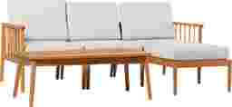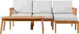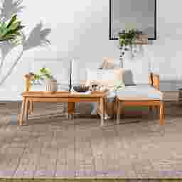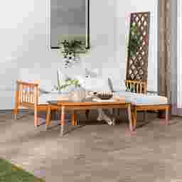 Lay back, lounge, and look forward to total backyard bliss with this Shellrich Coast patio set on display and ready to accommodate. Low-key comfort and high-key style effortlessly unite with this matching sets spindle sides and plush cushions. Configure each piece however you like to host summer soirees or intimate get-togethers with friends and family with enough room for everyone. The perfect surface for smores assembly, game night, or seasonal cocktails, the included solid wood coffee table is the cherry on top of this essential entertainment hub. Mindfully crafted with solid eucalyptus wood, this set is sustainable, stylish, and moisture resistant. Customer assembly is required.
