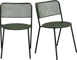Introducing the outdoor Sherwoody green side chair, set of 2, where elegance meets durability. Crafted from powder-coated steel, the Sherwoody features an exquisite, perforated design on the back and seat. The intricate detailing adds sophistication and breathability, making your summer gatherings comfortably enjoyable. The stackable feature makes storage a breeze. Whether hosting a party or preparing for winter, it's a game-changer.
