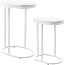 Yes, these tables are designed for both indoor and outdoor use. The contemporary white finish and oval terrazzo tops offer a sophisticated, modern aesthetic that transitions seamlessly from a poolside lounge to a living room sofa side. Their versatile style allows you to move them inside during the winter months to refresh your interior decor.