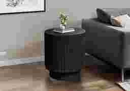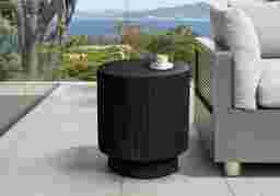 A perfect blend of style and functionality transform your indoor or outdoor home decor with the outdoor Tucany black end table. With its fashionable style and contemporary finish in a ridged design, this versatile table is a stunning addition to your living room, bedroom, or patio area, effortlessly rejuvenating any corner into a showcase of modern design. This durably designed structure is created using weather-resistant magnesium oxide that ensures longevity and protection from the elements, with an easy to clean top for those accidental spills. Thanks to its space-saving design, this round table neatly fits into tight spaces, providing the practicality you need without compromising on style.