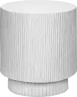 A perfect blend of style and functionality transform your indoor or outdoor home decor with the outdoor Tucany white end table. With its fashionable style and contemporary finish in a ridged design, this versatile table is a stunning addition to your living room, bedroom, or patio area, effortlessly rejuvenating any corner into a showcase of modern design. This durably designed structure is created using weather-resistant magnesium oxide that ensures longevity and protection from the elements, with an easy to clean top for those accidental spills. Thanks to its space-saving design, this round table neatly fits into tight spaces, providing the practicality you need without compromising on style.