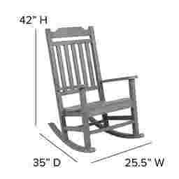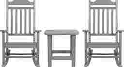 Enjoy the view from your front porch or back deck with the Winnie Elle poly resin rocking chairs and accent table. The design of this seating set is a timeless classic and will create a soothing atmosphere. A perfect addition to your patio, deck, or sunroom, this versatile set invites you to settle in and stay awhile. No matter where you choose to spend your free time comfort is essential. These rockers have a full-back design for full support while the sloping runners provide a smooth rocking motion for full relaxation. The handy slatted top side table holds your drinks, snacks or your latest read. Boasting a faux wood look that is UV protected and constructed of weather-resistant polystyrene, this patio table and chair set is designed to hold up in many environments. Unlike traditional wood furniture there is no back breaking sanding, painting or sealing and this low maintenance set won't rot, peel or splinter. Customer assembly is required.
