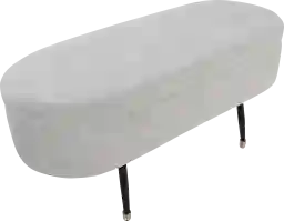This bench is a sophisticated example of mid-century modern charm, characterized by its clean oval silhouette and iconic tapered legs. The black metal legs are elevated with gold foot accents, adding a touch of contemporary luxury that allows the piece to transition seamlessly between modern, glam, and transitional decor styles.