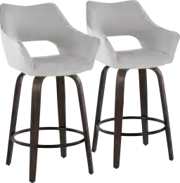 Add stylish and comfortable seating to your kitchen or counter area with the contemporary charm of the Ovur Gray Swivel Counter Height Stool, Set of 2. Featuring a padded upholstered fabric seat with a stylish cut-out backrest and sleek bentwood legs, this stool is sure to catch eyes. The Ovur is available in a variety of upholstery colors, so select one that suits your space the best Customer assembly required.