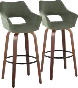 Add stylish and comfortable seating to your kitchen or counter area with the contemporary charm of the Ovur Green Swivel Barstool, Set of 2. Featuring a padded upholstered fabric seat with a stylish cut-out backrest and sleek bentwood legs, this stool is sure to catch eyes. The Ovur is available in a variety of upholstery colors, so select one that suits your space the best Customer assembly required.