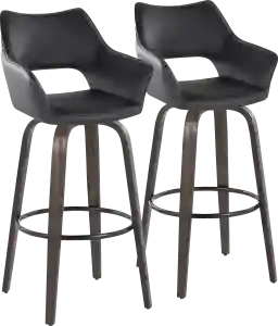 Add stylish and comfortable seating to your kitchen or counter area with the contemporary charm of the Ovur Black Swivel Barstool, Set of 2. Featuring a padded faux leather upholstered seat with a stylish cut-out backrest and sleek bentwood legs, this stool is sure to catch eyes. The Ovur is available in a variety of upholstery colors, so select one that suits your space the best Customer assembly required.