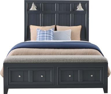 Comforting farmhouse style welcomes a dreamy new expression in the Owings Mill bedroom's update of classic Americana with nostalgic undertones. The headboard and footboard of this set showcase an intricate wainscoting design in white, framed with raised molding details. On the headboard, a charming pair of black sconces hold LED reading lights with touch controls. The dresser has black iron knobs and bar pull hardware for an enticing touch of contrast. The included mirror conveniently mounts to the dresser.