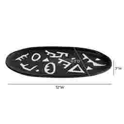 The key to making decorative accents look intentional is balance and the use of negative space. With its 12" x 6" dimensions, this tray provides ample room to group items in odd numbers—such as a small candle and a set of keys—while still leaving space for the tray's geometric abstract design to show through. Our styling guides recommend pairing the smooth ceramic texture with organic elements like a small plant or a wooden bead garland to create a sophisticated, layered look.