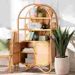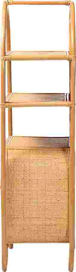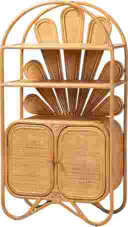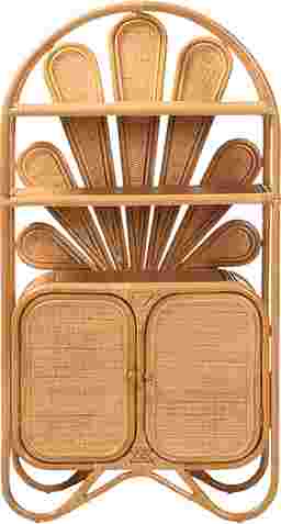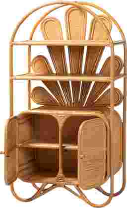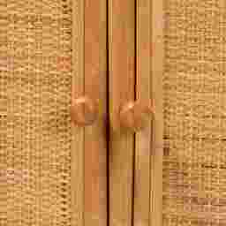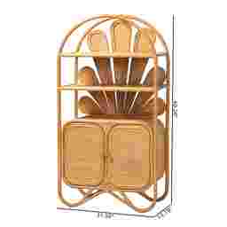 Enhance the functional beauty of your space through the wonderfully designed Owlstar natural storage cabinet. This bohemian piece is handcrafted from sustainably sourced natural rattan. Three open shelves offer space to arrange and display a variety of decor while two interior shelves offer secure storage space. The Owlstar will arrive fully assembled and feature a beautiful openwork design complete with fanning woven panels that serve as a standout backdrop. Rattan is a product of nature and may have variations in areas such as, but not limited to, color, pattern, grain and texture. The hair-like strands of rattan/rattan-fiber are common due to the nature of the material.