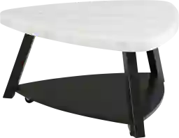 The Owlways White Cocktail Table is begging to be added to your living room This table features a guitar-pick shaped design, making it a unique and super easy fit in any space of your home. The white marble top contrasts perfectly with the black wooden base. This table serves a dual purpose thanks to its bottom shelf so you can display your favorite decor. Add this accent table to your home today for a look that will never go out of style. Customer assembly required.