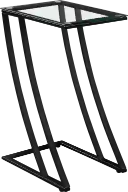 Add a touch of flair and a unique twist to your contemporary space with this sleek Oxaus side accent table with a lean z-shaped metal base. The sophisticated black finish with a clear tempered glass surface has space to place your tablet, a book, drink or snacks. Multi-functional to use as an end table or as an extra serving table when entertaining or watching TV. You will want this accent table for every room! Customer assembly is required.