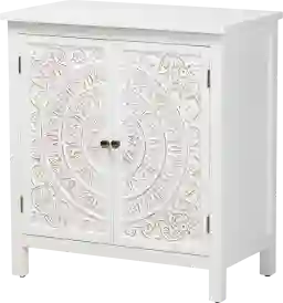 Beyond its decorative appeal, this cabinet is designed for high utility. The two doors open to reveal two spacious interior shelves, allowing you to maximize vertical storage. Whether you are using it in a living room for media accessories or in a dining area for serving pieces, the interior layout provides ample room to keep your home organized and clutter-free.