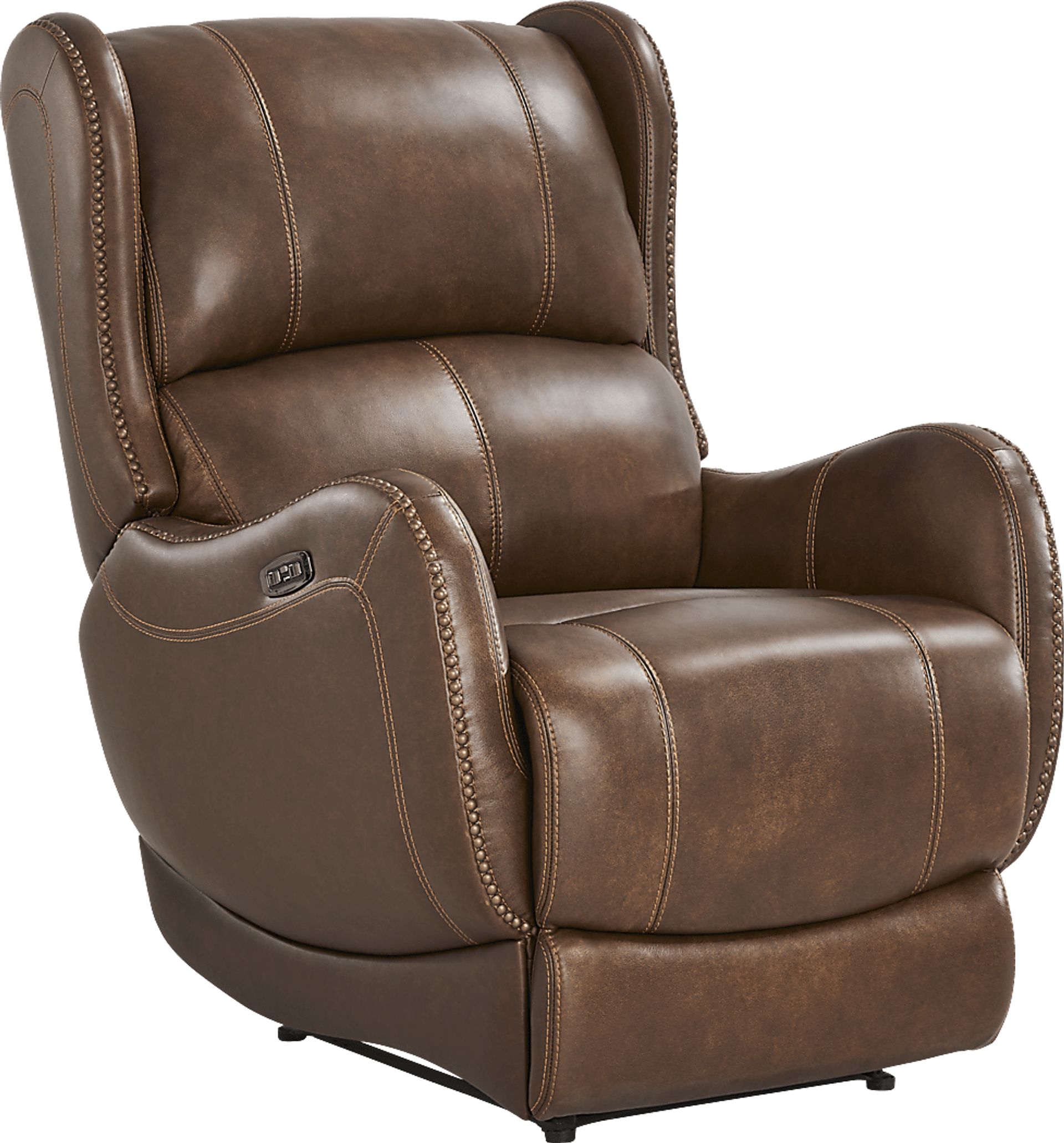 A timeless look with intricate detailing and understated sophistication gives the Oxford Square recliner a sense of warmth and effortless relaxation. Constructed of top grain leather where the body touches, this piece features detailed contrast stitching and nailhead trim along the curved arms and sides. Dual power reclining mechanism allows adjustment in the head and footrest for optimal comfort while the USB port allows you to accessibly charge your device while you unwind. Top grain leather where the body touches. Polyurethane sides and back.
