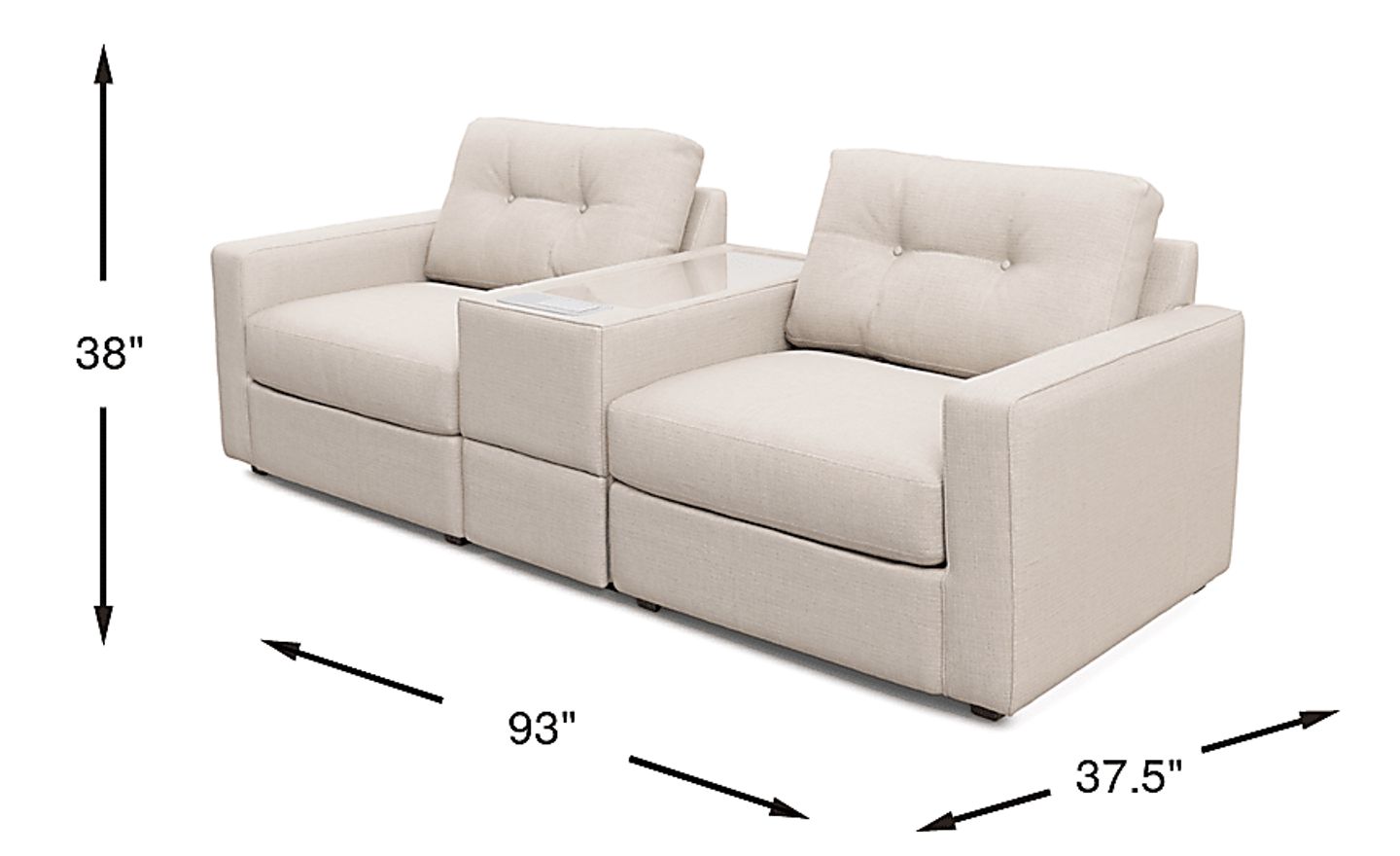 93.00"w x 37.50"d x 38.00"h