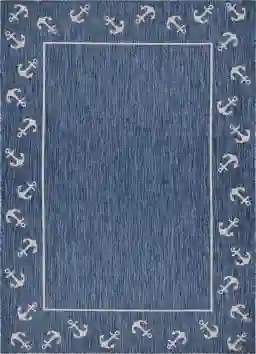 This rug is ideally suited for coastal environments and sunny spaces. The synthetic polypropylene and polyester fibers are naturally resistant to fading and UV damage, helping to preserve the vibrant blue nautical pattern even under direct sun exposure. Additionally, these materials are mold- and mildew-resistant, making them a high-performance choice for humid or salt-air climates.