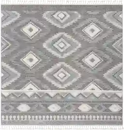 While the pattern is geometric and bohemian, the neutral gray and white color palette allows this rug to blend seamlessly into rustic or farmhouse decors. The high-low texture and fringe tassels add a "handmade" feel that complements the natural materials and weathered finishes often found in farmhouse styling. It serves as a soft, sophisticated foundation that anchors the room without overwhelming other decorative elements.