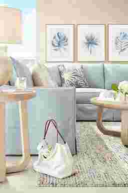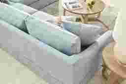 From the moment you walk through the door, drop your keys and say, "Whew, what a day," the Pacific Grove collection from Cindy Crawford Home is there with the comfort and serenity you need to unwind in style. Deadlines, to-do lists and everything else can wait, especially when you're welcomed by a sectional wrapped in the cool, coastal blue of a perfectly tailored slipcover. The soft woven fabric offers the perfect reminder of what comfort really feels like while plush cushions invite you to stretch out, sprawl or simply lounge as daylight dims and evening settles in. For overnight guests, the built-in gel foam queen sleeper unfolds to offer a cozy night's rest. Effortless curves, courtesy of the chic flair arms, bring subtle sophistication to an already breathtaking silhouette. Tapered block legs and artfully patterned toss pillows complete the picture-perfect style. This L-shaped sectional includes a left arm facing sleeper sofa alongside a right arm facing sofa. Upholstery: 50% Polyester, 50% Cotton