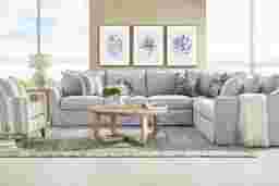 From the moment you walk through the door, drop your keys and say, "Whew, what a day," the Pacific Grove collection from Cindy Crawford Home is there with the comfort and serenity you need to unwind in style. Deadlines, to-do lists and everything else can wait, especially when you're welcomed by a sectional wrapped in the cool, coastal blue of a perfectly tailored slipcover. The soft woven fabric offers the perfect reminder of what comfort really feels like while plush cushions invite you to stretch out, sprawl or simply lounge as daylight dims and evening settles in. Effortless curves, courtesy of the chic flair arms, bring subtle sophistication to an already breathtaking silhouette. Just when you think this look couldn't get any better, tapered block legs and artfully patterned toss pillows step in to complete the picture-perfect style. This L-shaped sectional includes a left arm facing sofa alongside a right arm facing sofa. Upholstery: 50% Polyester, 50% Cotton