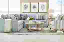 From the moment you walk through the door, drop your keys and say, "Whew, what a day," the Pacific Grove collection from Cindy Crawford Home is there with the comfort and serenity you need to unwind in style. Deadlines, to-do lists and everything else can wait, especially when you're welcomed by a sectional wrapped in the cool, coastal blue of a perfectly tailored slipcover. The soft woven fabric offers the perfect reminder of what comfort really feels like while plush cushions invite you to stretch out, sprawl or simply lounge as daylight dims and evening settles in. Effortless curves, courtesy of the chic flair arms, bring subtle sophistication to an already breathtaking silhouette. Just when you think this look couldn't get any better, tapered block legs and artfully patterned toss pillows step in to complete the picture-perfect style. This L-shaped sectional includes a right arm facing loveseat alongside a left arm facing sofa. Upholstery: 50% Polyester, 50% Cotton